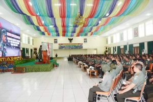 Kubu Raya, Selasa (12/3/19) – Pangdam XII/Tanjungpura, Mayor Jenderal TNI Achmad Supriyadi, memberikan pengarahan kepada Dansat/Kabalak, para prajurit dan ASN jajaran Kodam XII/Tpr dalam rangka menghadapi Pemilu 2019, di Aula Makodam XII/Tpr, Jln. Arteri Alianyang, Kubu Raya, Kalbar.