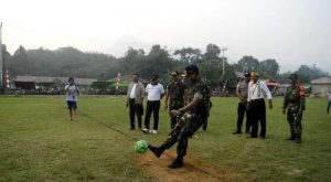Sanggau, Sabtu (14/9/19) – Tendangan bola pertama dan pemukulan gong oleh Komandan Satgas Pamtas Yonmek 643/Wanara Sakti, Mayor Inf Dwi Agung Prihanto di lapangan sepak bola Desa Lubuk Sabuk, Kecamatan Sekayam, Kabupaten Sanggau menandai dibukanya turnamen sepak bola ‘Babai Cingak Cup’ dalam rangka memeriahkan Hari Ulang Tahun yang ke-74 Tentara Nasional Indonesia (TNI). Pembukaan turnamen Babai Cingak Cup ini dilaksanakan kemarin sore.