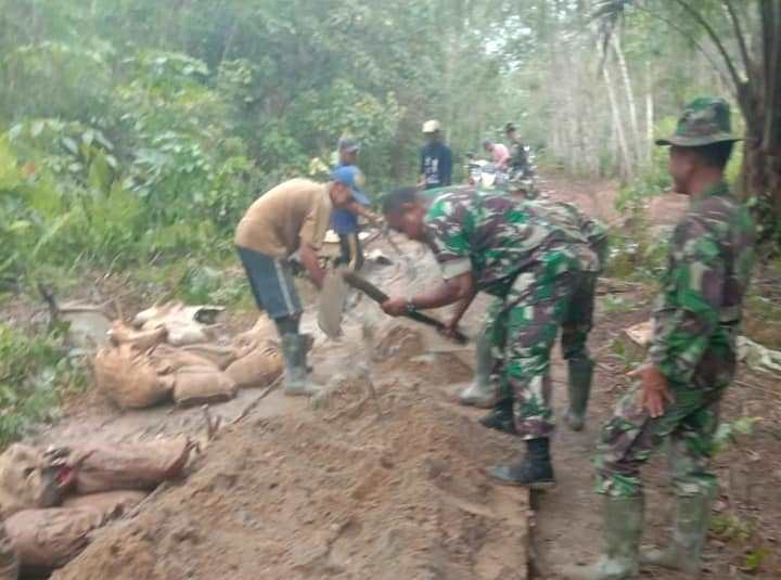 SAMBAS – Guna menjalin komunikasi antar warga, Babinsa Koramil 1202 – 08/Sekura Sersan Dua Suwardi, mengajak kepada warga masyarakat melaksanakan gotong royong secara bergiliran untuk melaksanakan karya bakti pembangunan jalan rabat beton di Dusun Panegaman Desa Sekura, Kecamatan Teluk keramat, Kabupaten Sambas, Minggu (13/10/2019).