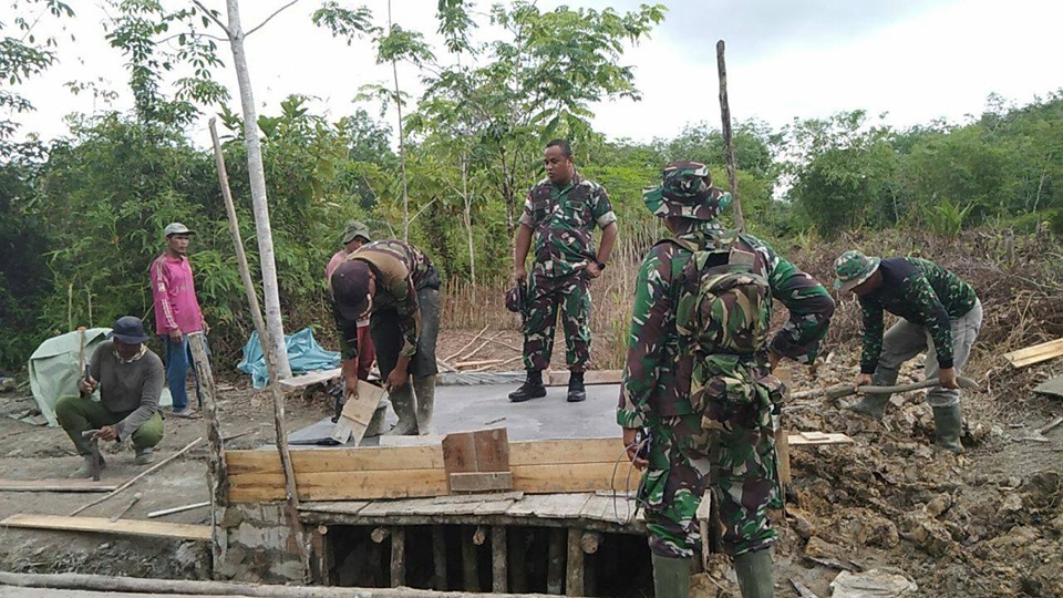 “Pembangunan jembatan ini harus dipercepat karena sangat dibutuhkan masyarakat. Untuk itu,yang sedang kami kerjakan beberapa hari ini akan kami percepat pembangunannya karena sangat dibutuhkan dan dinantikan oleh warga,” Tutur Danramil 1202-06/Sry Kapten Inf Sujarno.