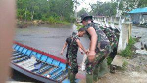 Sambas – Dansatgas Tmmd 106 Letkol Arm J.L Lopulalan S Sos mengatakan, dengan keadaan cuaca hujan di lokasi pembangunan jalan rabat beton yang merupakan sasaran fisik TMMD ke-106 Kodim 1202/Skw, meminjam perahu motor bangkong warga, guna kelancaran pembangunan jalan rabat beton,di Dusun Kuayan Desa Mekar Jaya, Kecamatan Sajad, Kabupaten Sambas. Rabu (23/10/2019).