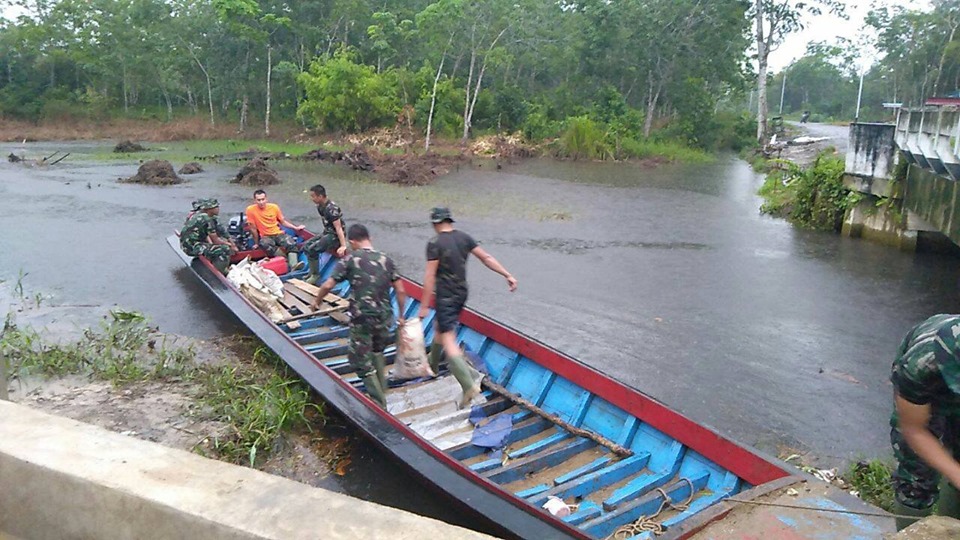 ”Yang namanya darurat, semua spontanitas, supaya pekerjaan tidak melambat. Saya pun harus rela melangsir material dengan menggunakan perahu motor bangkong milik warga,”ucap Dansatgas Tmmd.