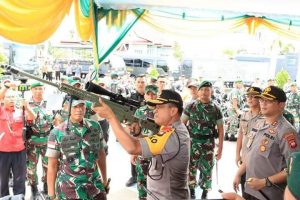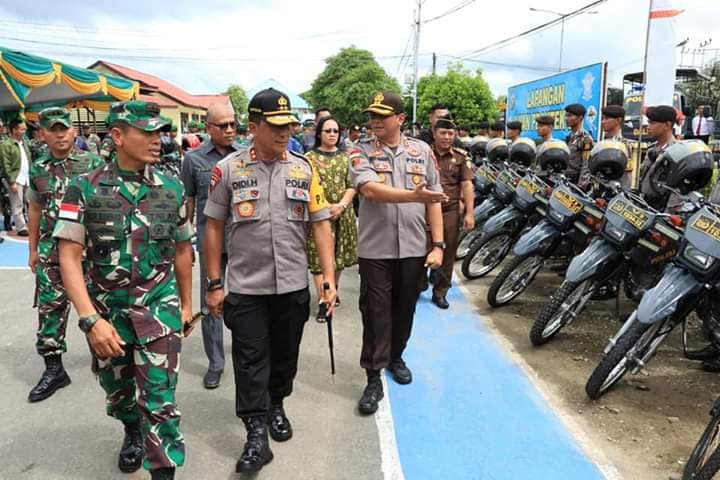 Kapuas Hulu, Sabtu (21/12/19) – Para pimpinan TNI-Polri serta Pemerintah di Provinsi Kalimantan Barat hari ini melaksanakan kunjungan kerja ke wilayah Kabupaten Kapuas Hulu. Diantaranya Gubernur Kalbar yang diwakili Kepala Dinas Perumahan, Kawasan Permukiman dan Lingkungan Hidup, Adi Yani, Pangdam XII/Tpr, Mayjen TNI Muhammad Nur Rahmad, Kapolda Kalbar, Irjen Pol Didi Haryono, Danlanud Supadio, Marsma TNI Palito Sitorus, Danlantamal XII/Pontianak, Laksma TNI Agus Hariadi serta Danrem 121/Abw, Brigjen TNI Bambang Trisnohadi. Kunjungan kali ini adalah untuk melaksanakan pemeriksaan terhadap sarana dan prasarana TNI-Polri dalam rangka kesiapan pengamanan Pilkada tahun 2020. Pemeriksaan dilaksanakan di Mapolres Kapuas Hulu.