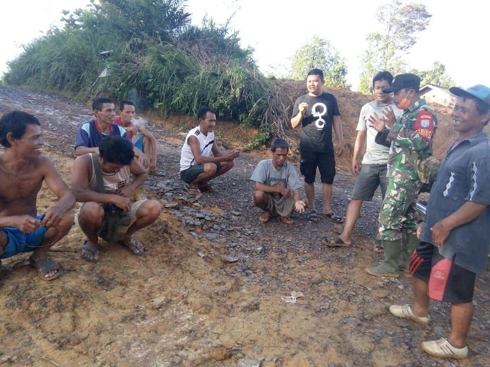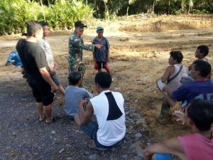 Sanggau – Kamis (9-04-2020) Satgas TMMD Regtas 107 Kodim 1204 /Sanggau Sertu Yanto yang dalam sehari hari bertugas melaksanakan pengawasan pengerjaan jalan disela sela kegitan tersebut disempatkan melakukan Komsos dengan masyarakat di Lokasi TMMD di Dusun Bukong Desa Panduraya Kecamatan Parindu Kabupaten Sanggau.