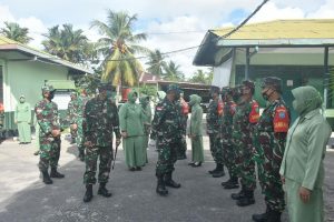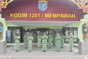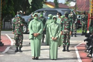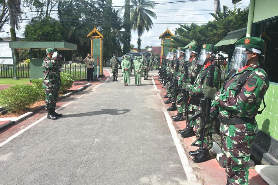 Mempawah, Senin Tanggal 27 April 2020, Danrem 121/Abw, Brigjen TNI RONNY, S.A.P dan Ketua Persit Kartika Chandra Kirana Koorcab Rem 121 PD XII/Tanjung pura, Ny.Rissa Ronny melaksankan Kunjungan kerja di Kodim 1201/Mpw.