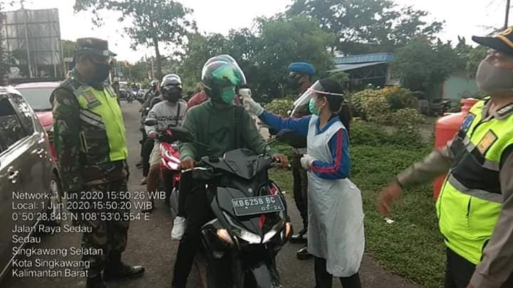Dan Babinsa juga memberikan pengertian kepada pengendara agar selalu menggunakan masker bila keluar rumah dan melaksanakan pengecekan kepada warga yang datang dari luar Kota Singkawang supaya melaksanakan karantina mandiri di rumah selama 14 hari demi mencegah penularan virus covid 19. Dalam pelaksananaan mengecek suhu tubuh pengendara dan tidak ditemukan suhu tubuh yang melebihi 37 C.