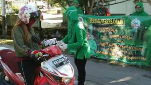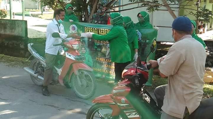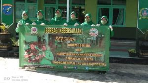 Kegiatan Berbagi Kebersamaan dipimpin Ketua Persit Ranting 04, Ny. Aris Yudi Yana. Adapun kegiatannya berupa karya bakti pembersihan tempat ibadah, penyemprotan disinfektan serta pembagian snack kepada pengendara serta pejalan kaki yang melintasi Makoramil 03/ Tebas.
