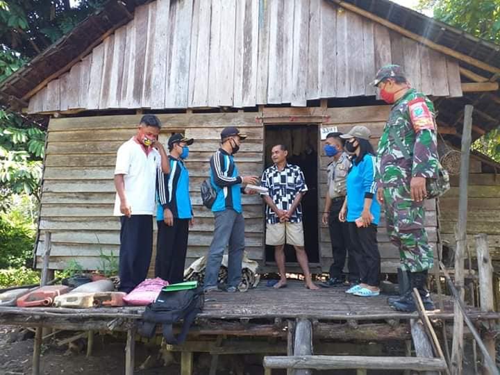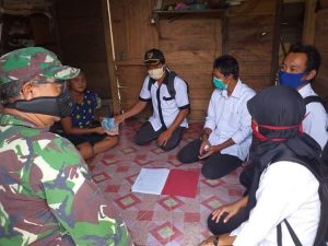 Sertu Sukijo Babinsa Koramil 1205-07/Sintang mengawal BST yang akan diberikan kepada Keluarga Penerima Manfaat (KPM) di desa Penjernang Hulu, kecamatan Sui Tebelian Kabupaten Sintang pada Senin (15/06/2020).