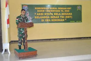 Sintang – Kodim 1205/Sintang gelar pembinaan Keluarga Besar TNI (KBT) yang merupakan salah satu metode pembinaan teritorial yang menjadi wahana untuk mencapai kesepahaman dan persepsi tentang pembinaan wilayah pertahanan di darat kepada seluruh komponen bangsa termasuk KBT, kegiatan ini dilaksanakan di Aula Makodim 1205/Sintang pada Rabu (17/06/2020).