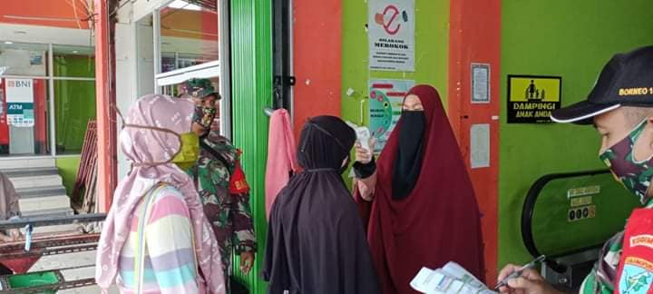 Singkawang – Kamis (18/06/2020) Anggota Koramil 1202-05/Skw melaksanakan patroli penegakan disiplin dan penerapan protokol kesehatan di Perkantoran/Bank& Hotel, Pertokoan semi modern, Wahana Bilyard dan tempat keramaian dalam rangka masyarakat produktif dan aman dari Covid-19 di wilayah Kota Singkawang.