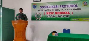 “Kita sosialisasi kepada para pelaku usaha, tentang apa yang harus dilakukan dalam new normal saat ini. Mengacu pada protokol kesehatan Covid-19, tentunya selalu memakai masker, ukur suhu tubuh, mencuci tangan dan menjaga jarak,” jelas Kasdim 1206/Psb Mayor Inf Agus Jaelani selaku pimpinan acara sosialisasi tersebut.