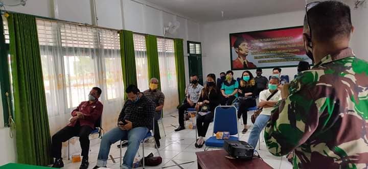 Putussibau – Dalam rangka mencegah dan memutus mata rantai penularan Covid -19 di wilayah Kabupaten Kapuas Hulu, Kodim 1206/Putussibau melaksanakan sosialisasi kepada para pedagang, pemilik hotel dan warung makan di aula Makodim 1206/Psb pagi tadi, Jumat 19/06/20.