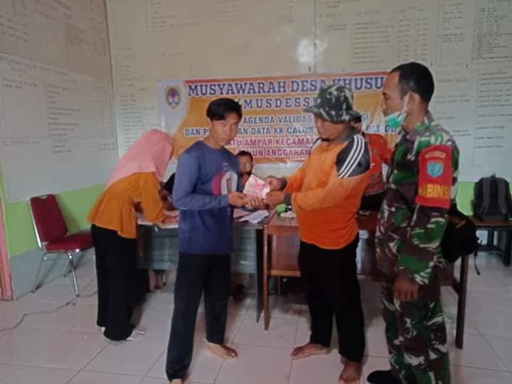 Melawi – Upaya menciptakan situasi yang kondusip di wilayah para Babinsa Koramil 16/Pemuar kawal penyaluran BLT DD sampai pelosok desa sekaligus memastikan penyaluran BLT tepat sasaran kepada warga yang membutuhkan pada Jum,at (19/06/2020).