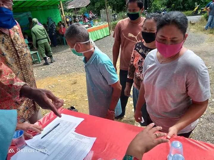 Babinsa Koramil 1202-07/Ledo Kawal Penyaluran dana BLT di Desa Tebuah Marong.