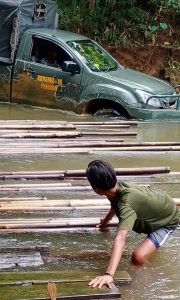 Melawi – Medan terjal tidak menyurutkan anggota Koramil 1205 – 16/Pemuar untuk melaksanakan pendampingan penyaluran BLT kepada masyarakat di desa Langan kecamatan Belimbing kabupaten Melawi pada Sabtu (20/06/2020).