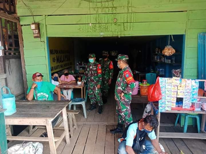 Bertempat di Kec. Seluas Kab. Bengkayang Danramil dan Babinsa Koramil 1202-04/Seluas laksanakan kegiatan penegakan disiplin dan penerapan protokol kesehatan Covid-19.