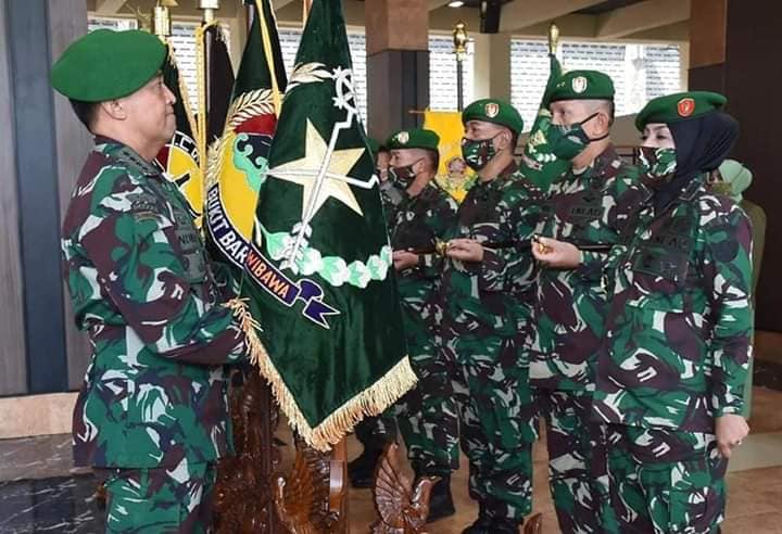 Jakarta. Kepala Staf Angkatan Darat (Kasad) Jenderal TNI Andika Perkasa memimpin Serah Terima Jabatan (Sertijab) sembilan jabatan Pangkotama dan Kabalakpus TNI AD, sekaligus menerima laporan korps kenaikan pangkat 56 orang Perwira Tinggi (Pati) TNI AD, bertempat di Lantai Dasar Gedung E Markas Besar Angkatan Darat (Mabesad), Jakarta, Kamis (25/6/2020).