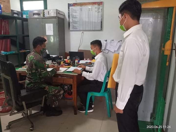 Singkawang- Kamis (25/06/2020) Pasi pers Kodim 1202/Singkawang Kapten Inf Witana Memberikan pengarahan kepada pemuda calon pendaftar prajurit TNI AD agar mempersiapkan dirinya dengan matang guna meraih hasil yang maksimal di Makodim 1202/ Singkawang, Jalan Alianyang Pasiran, Kota Singkawang.