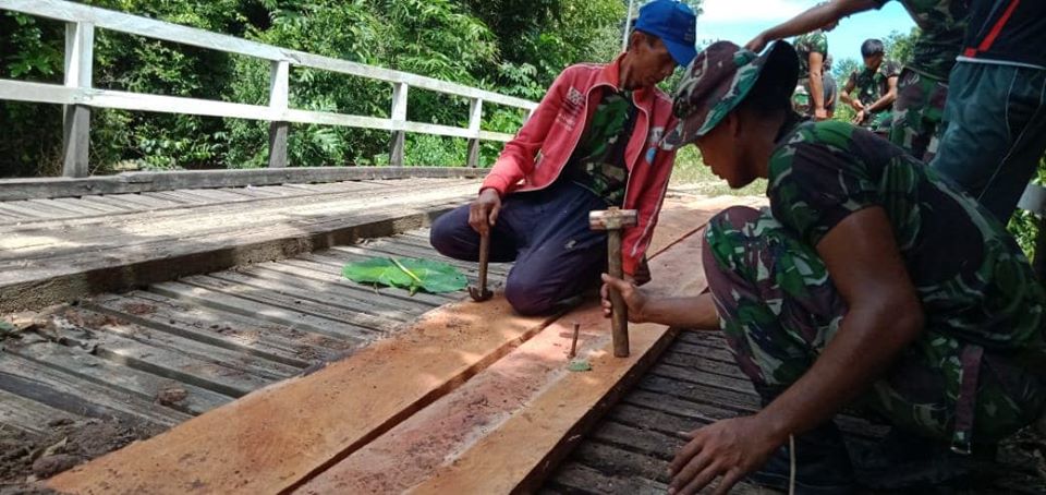 “Perbaikan jembatan yang dilakukan secara gotong royong membuat pekerjaan menjadi ringan. Bahkan menjelang sore, perbaikan telah rampung dikerjakan,” ucap Dansatgas.