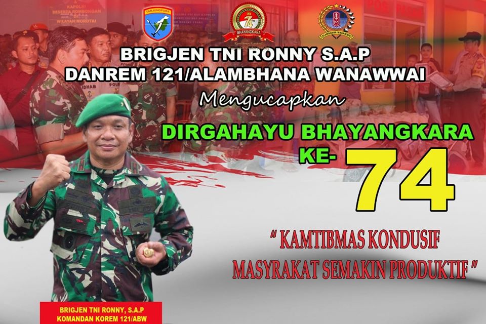Keluarga Besar Korem 121/Abw mengucapkan Selamat Hari Bhayangkara Ke-74.