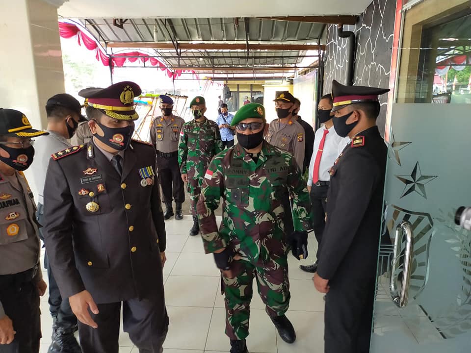 Sintang, Danrem 121/Abw Brigjen TNI Ronny, S.A.P bersama Kasrem 121/Abw dan Para Kasi Korem 121/Abw mendatangi kantor Polres Sintang dalam rangka berikan ucapan Selamat Hari Bhayangkara ke 74 tahun, 1 juli 2020 yang berlangsung di Polres Sintang.