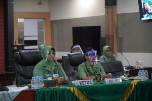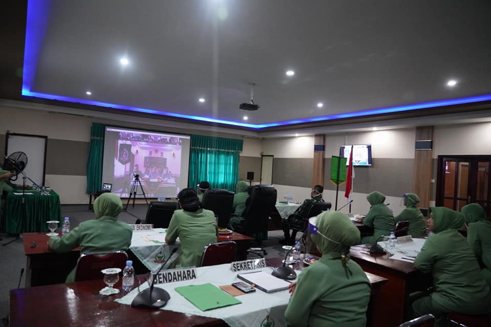 Ketua Persit Kartika Candra Kirana Koorcab Rem 121 PD XII/Tanjungpura Ibu Rissa Ronny melaksanakan Vicon (Video Conference) dengan para Ketua Cabang sejajaran Koorcab rem 121 PD XII/Tanjungpura di Ruang Kolakops Makorem 121/Abw Jalan Pangeran Kuning No. 1 Sintang (Rabu, 2/7/2020).