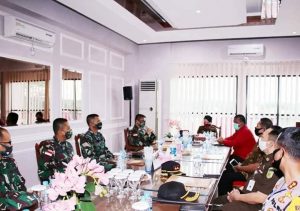 Landak, Kamis (2/7/20) – Guna memperkuat sinergitas, Pangdam XII/Tanjungpura, Mayjen TNI Muhammad Nur Rahmad melaksanakan kunjungan kerja sekaligus silaturahmi dengan Forum Koordinasi Pimpinan Daerah (Forkopimda) Kabupaten Landak. Bertempat di aula Kantor Bupati Landak.