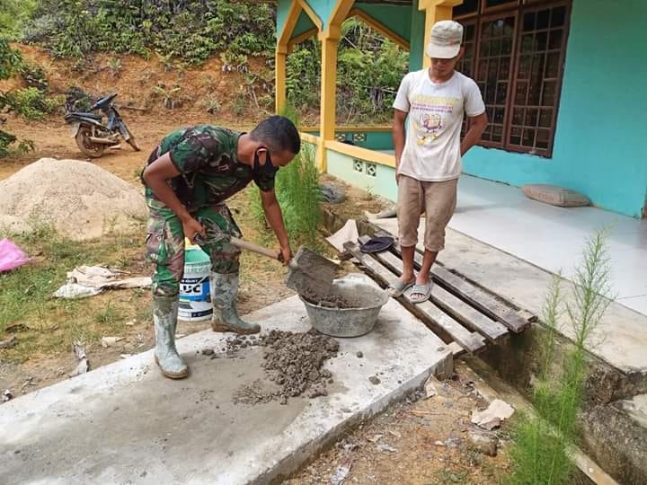 Selain tugas tanggung jawabnya dalam mengerjakan sasaran fisik pengecoran jembatan,anggota satgas juga memanfaatkan waktunya dalam membantu Warga dalam perbaikan Masjid.
