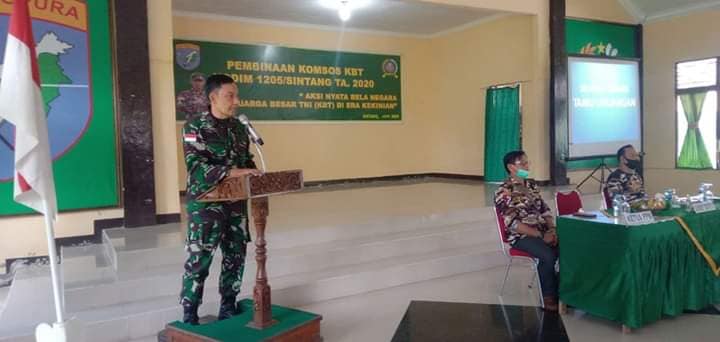 Sintang – Guna meningkatkan komunikasi dan jalinan silahturahmi antara Kodim 1205/Sintang dengan Keluarga Besar TNI (KBT), Kodim Sintang gelar pembinaan komunikasi sosial (Komsos) dengan KBT di aula Makodim 1205/Sintang Jalan Ksatria Kelurahan Tanjung Puri Kecamatan Sintang Kabupaten Sintang pada Rabu pagi (9/07/2020).