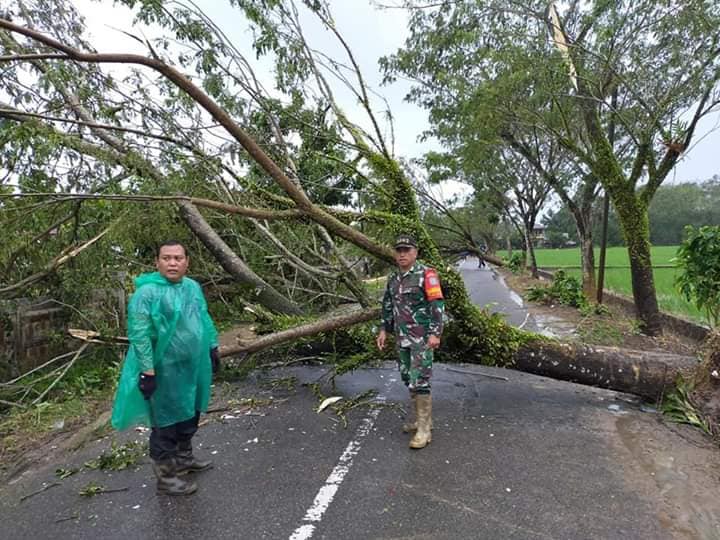 Danramil 1202-06/Sml Letda Inf Agustinus iku turun langsung membantu kerja bakti bersama masyarakat yang terkena musibah, angin kencang dan pohon-pohon bertumbang di jalan raya.