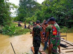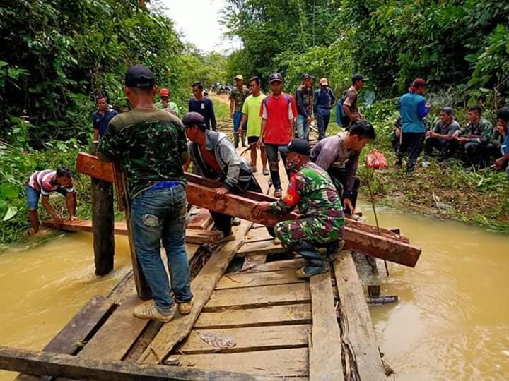“Merupakan bagian dari tugas kami demi membantu meningkatkan kesejahteraan masyarakat. Perbaikan jembatan kayu yang sudah rapuh terkena bajir agar tidak membahayakan dan mempermudah masyarakat untuk keluar masuk kampung sebagai upaya TNI khususnya Babinsa mengatasi kesulitan masyarakat didesa binaannya,” Ujar Babinsa.