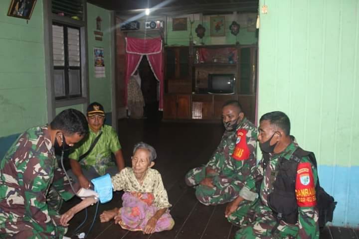 Terpanggil karena rasa kemanusiaan serta komitmennya untuk membantu kesulitan warga desa Danti, Dansatgas Letkol Arm Victor J.L Lopulalan beserta Danramil 1202-02/Sanggau Ledo, Bapak Kades M Nurkholis setiadi S.pd, bersama team kesehatan tidak tinggal diam membantu memberikan pengobatan kepada ibu jamilah, warga desa Danti.