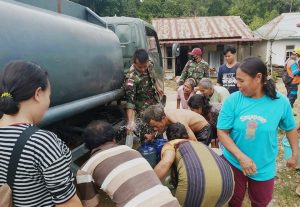 “Selain dukungan berupa tenaga dan bantuan sembako, kami juga mengoperasikan truk tangki air untuk menyediakan air bersih kepada masyarakat,” jelas Kukuh.