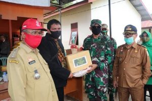 Sanggau– Dandim 1204/Sanggau Letkol Inf Gede Setiawan bersama Ketua Persit Kartika Kirana Cabang XLVIII Kodim 1204/Sanggau Ny. Yeni Gede Setiawan memberikan bantuan sembako berupa beras dan mie instan kepada warga yang terdampak musibah banjir di Posko Bersama Bencana Banjir Desa Nekan Kec. Entikong Kab. Sanggau.