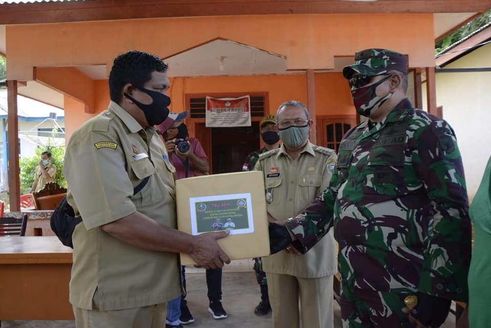 Dalam kesempatan tersebut Danrem 121/Abw mengunjungi dan sekaligus memberikan bantuan berupa sembako kepada masyarakat di ds Nekan, Danrem mengatakan bahwa bantuan ini merupakan wujud kepedulian TNI kepada masyarakat” tegasnya