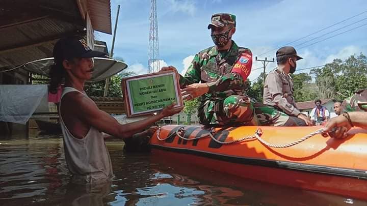 Dalam rangka membantu dan meringankan beban warga yang terdampak banjir, Korem 121/Abw dan Persit Koorcab Rem 121 terjun langsung ke lokasi banjir di wilayah Jelai Hulu untuk memberikan bantuan. Danrem 121/Abw Brigjen TNI Ronny, S.A.P mengatakan bahwa sebagai bentuk kepedulian TNI dalam hal ini Korem 121/Abw terhadap korban banjir, Korem 121/Abw bersama dengan unsur Forkopimda dan instansi terkait memberikan bantuan berupa Sembako , pakaian layak pakai dan obat-obatan serta air minum bersih.