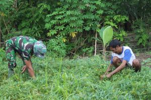 Prada Hengky terlihat sangat akrab saat memanen ubi jalar bersama pak Okto di kebun miliknya sendir yang keberadaan tidak jauh dari Rumahnya