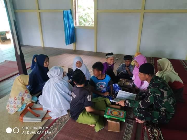 Seperti yang di lakukan Pratu Nuris dari Yonzipur 6 dan Prada Rohim dari Yonif 645/GTY, sejak TMMD digelar keduanya aktif mengajar mengaji di Masjid Nurul Islam desa Danti kecamatan Sanggau Ledo.