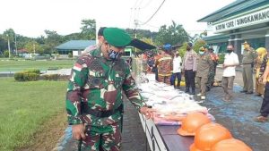 Singkawang – Dandim 1202/Skw Letkol Arm Vìctor JL Lopulalan S.Sos bertindak sebagai Pimpinan apel dalam kegiatan Apel Gelar Satgas Huma Desa Mandiri Menuju Langit Biru di Bumi Khatulistiwa Kodim 1202/Skw