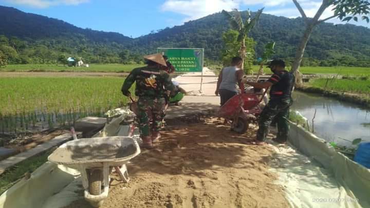 “Kita libatkan masyarakat dalam pengerjaannya sehingga ini juga menjadi salah satu upaya kita menanamkan nilai dan semangat kegotongroyongan,” kata Danramil.