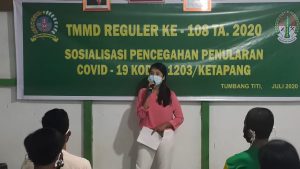 Ketapang – Jum’at (17/7/20 Puskemas pembatu bersama satgas TMMD Reguler Ke -108 Kodim 1203/Ketapang di Desa Beringin Rayo, Kec.Tumbang laksanakan sosialisasi pencegahan dan penanggulangan Covid-19.