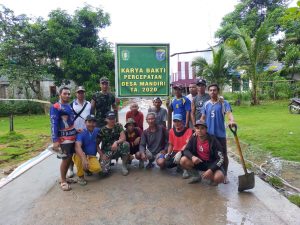 Ketapang, Minggu (19/7/20) – Koramil 1203-10/Sandai bersama warga masyarakat melaksanakan karya bakti pembangunan jalan Rabat Beton dengan panjang 600 mtr, lebar 3 mtr dengan ketebalan 0,20 mtr di Dusun Kuala Laur, Desa Penjawaan, Kecamatan Sandai, Kabupaten Ketapang. Pembangunan jalan rabat beton melalui program karya bhakti TNI guna percepatan desa mandiri.