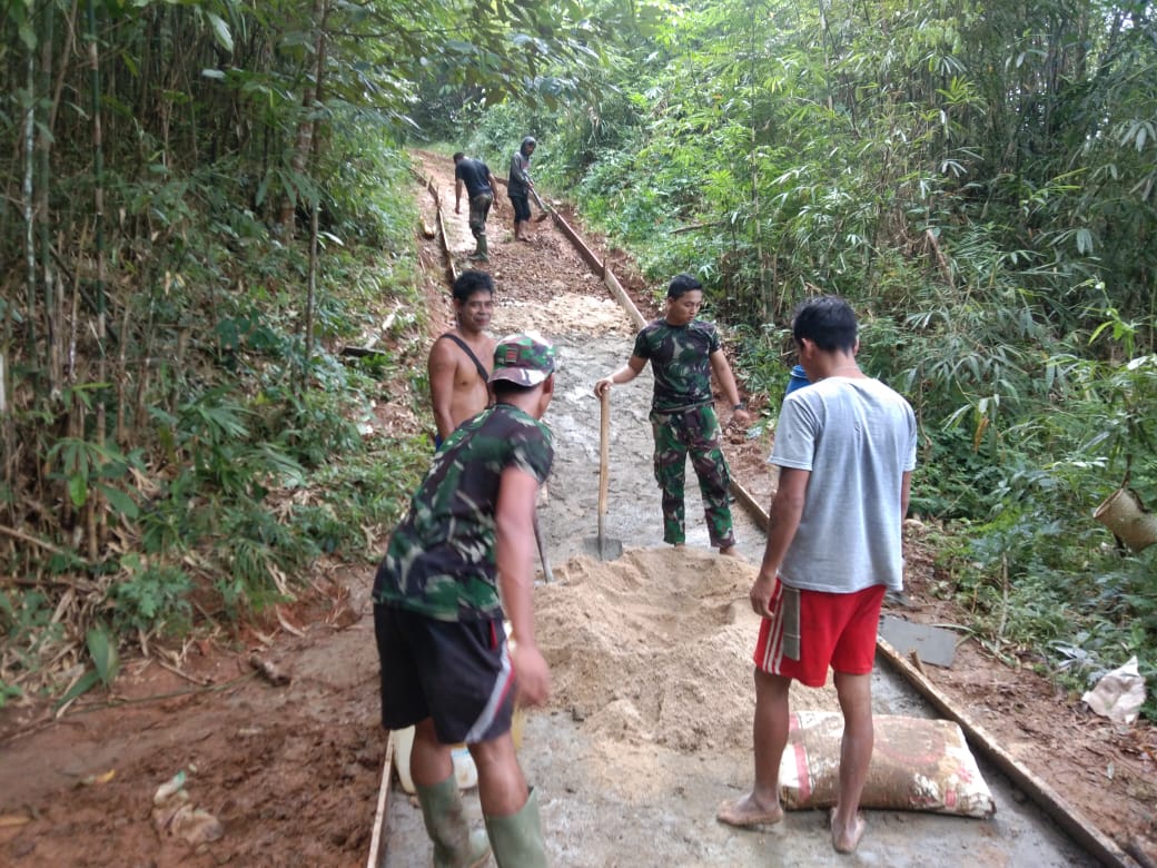 Pasiter Kodim 1203/Ketapang Kapten Inf Yulianto mengatakan, meski di hari libur personel satgas TMMD dan warga tetap bekerja seperti biasa unutuk mempercepat dan menuntaskan sasaran fisik seperti pembuatan jalan Rabat beton.
