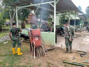 lebih lanjut Danramil mengatakan bahwa dengan kami melakukan praktek pembuatan cuka kayu ini, diharapkan Babinsa dapat mensosialisasikan lagi kepada masyarakat dan selanjutnya dapat dipraktekan oleh masyarakat lainnya tentang cara membuat cuka kayu yang kegunaannya untuk menjadikan pupuk tanaman. “Masyarakat dapat memanfaatkan sisa kayu saat mereka membuka lahan untuk dibuat cuka sehingga diharapkan mereka tidak lagi membakar lahan lagi,” tutup Danramil”