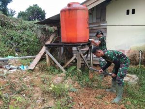 Bengkayang – Di pimpin Serda Dwi Subekti anggota satgas membantu perbaikan paralon yang bocor milik warga desa Danti, kecamatan Sanggau Ledo yang di laksanakan oleh satgas TMMD Reguler Ke -108 Kodim 1202/Skw.