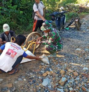 Sejumlah Arco yang rusak sementara di perbaiki oleh Anggota satgas bersama Warga, Prada Ali yang sedikit mempunyai pengalaman bengkel membantu memperbaiki Arco yang rusak tersebut.