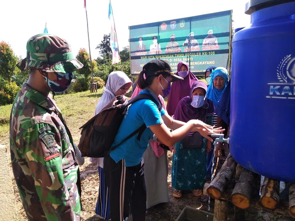 Seperti yang dilakukan oleh Prada Gilang salah satu anggota Satgas TMMD, di berbagai kesempatan ajarkan warga soal cara cuci tangan yang benar dengan menggunakan sabun.