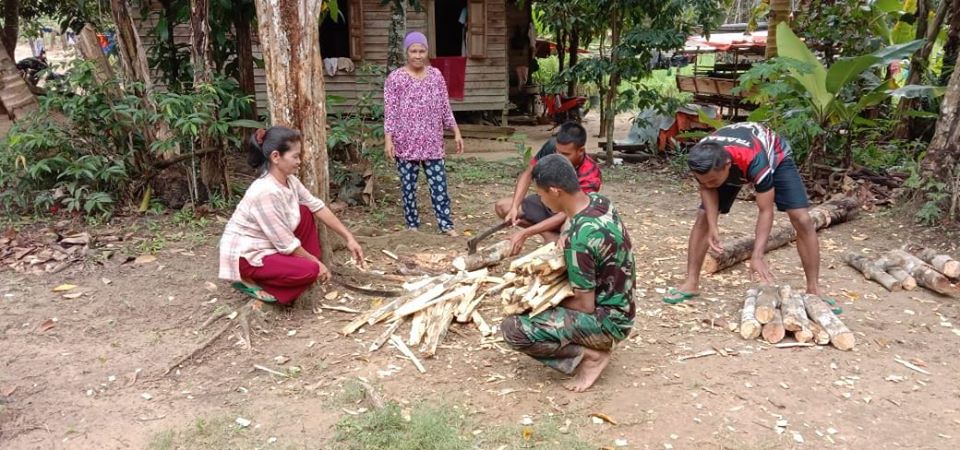 Seperti yang dilakoni oleh Prada Salomo anggota satgas TMMD Reg 108 membantu orang tua asuh ibu Roqibah, warga desa danti yang sedang memasak, spontan jiwa sosial seorang prajurit muncul melihat kayu bakar tinggal sedikit saya bersama yang lainnya membelah kayu bakar.