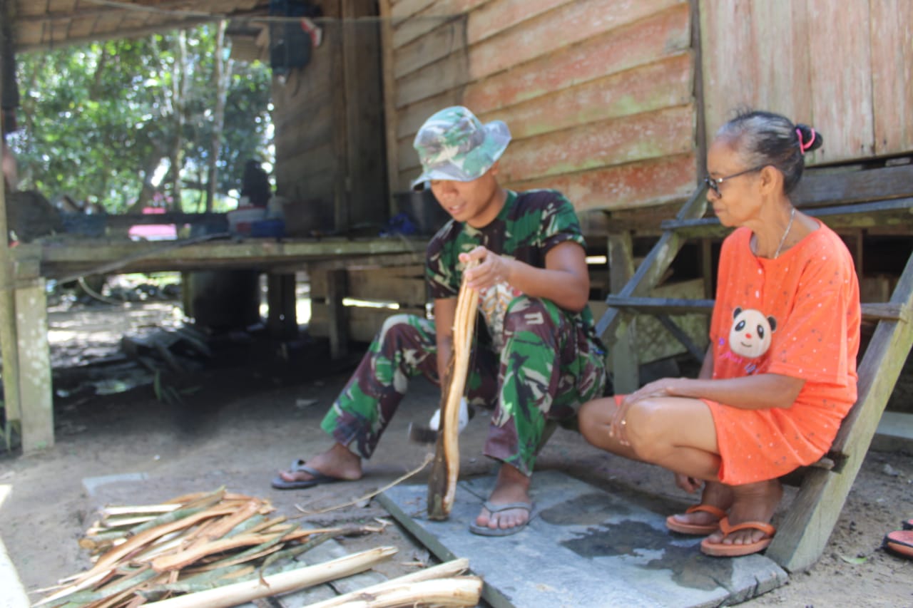 Seperti yang dilakukan oleh Kopda Ardianto disela waktu istirahat melaksanakan siraturahmi sekaligus ingin mempelajari tentang kayu yang sering di sebut warga Penjarang buki obat tradisonal bersama Ibu Saprol atau Mak Saprol (57).