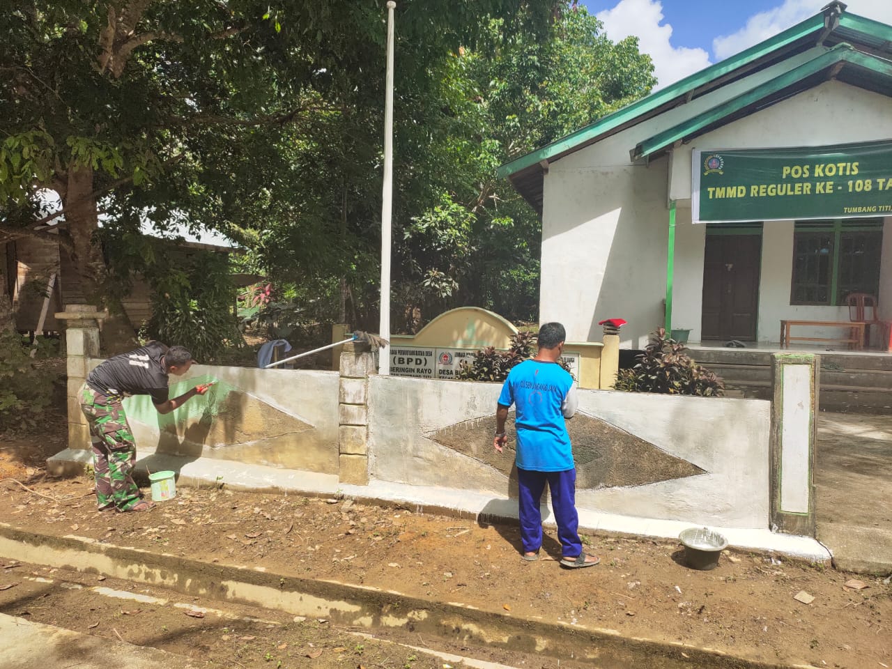 Aktivitas di kantor desa sekaligus Poskotis TMMD terlihat sangat lengang, membuat personel satgat TMMD Reguler Ke -108 bersama warga mengambil kesempatan untuk melaksanakan pengecatan tembok pagar kantor desa beringin Rayo